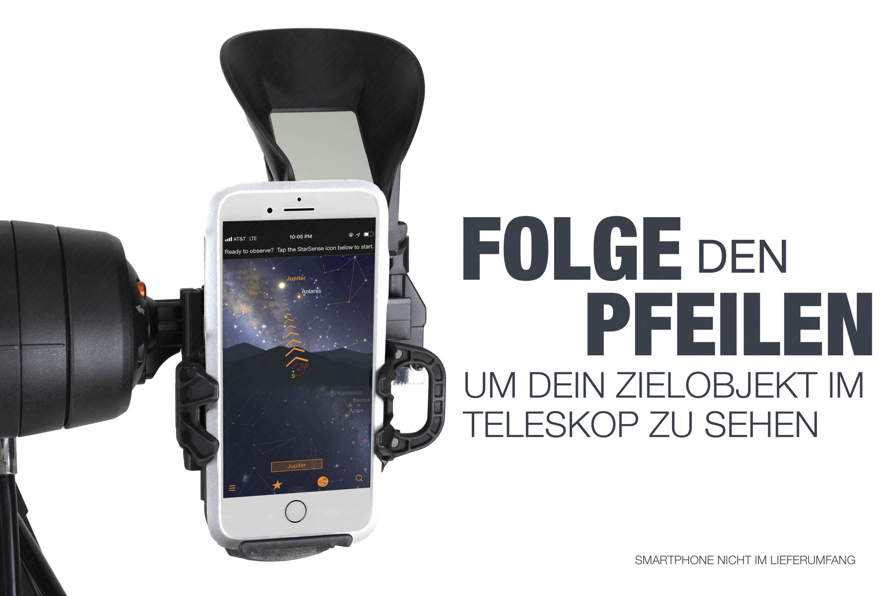 * Die zum Patent angemeldete StarSense-Technologie nutzt Ihr Smartphone zur Analyse von Sternmustern am Himmel. Es berechnet in Echtzeit, wohin das Teleskop zeigt – und weiß somit jederzeit, welches Beobachtungsobjekt sie gerade anvisieren. Prüfen Sie hier die Kompatibilität Ihres Telefons.