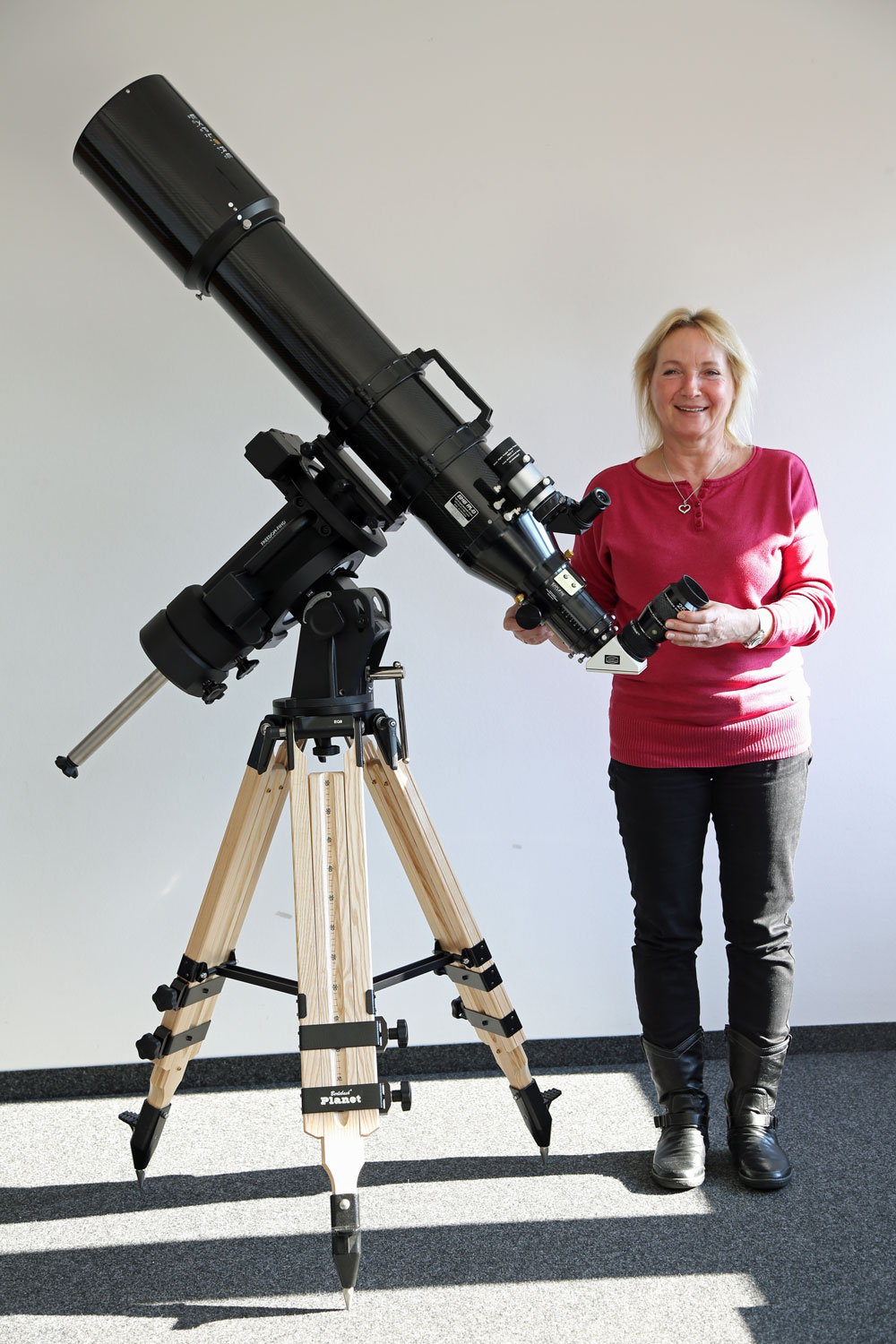 Ein Explore Scientific 165 mm APO auf Skywatcher EQ-8 und Berlebach Planet Holzstativ.