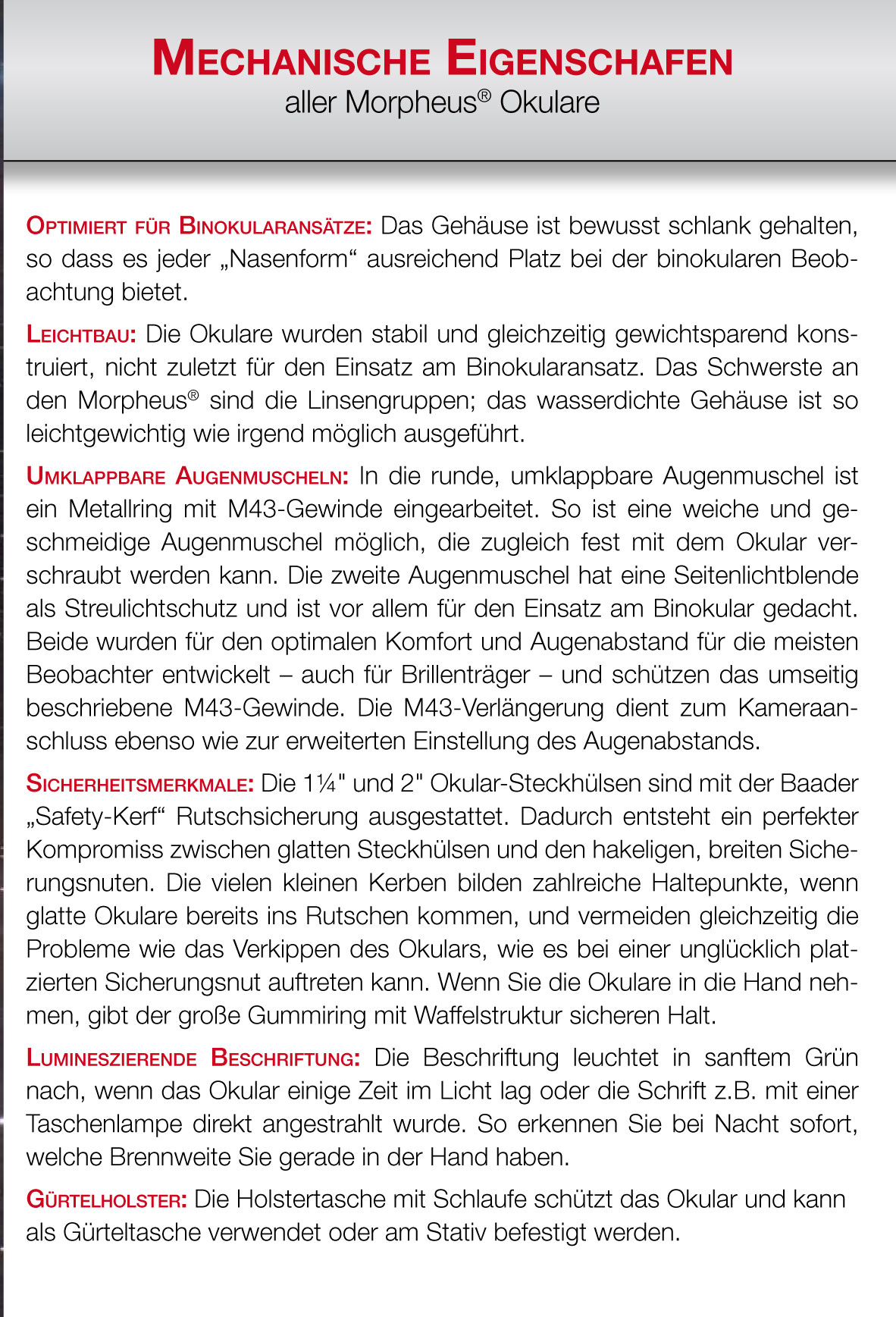 - Langer Augenabstand und binotauglich: Mit den Morpheus beobachten Sie bequemer als jemals zuvor mit Weitwinkelokularen