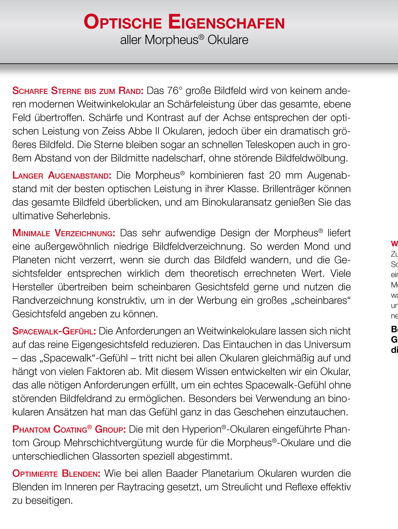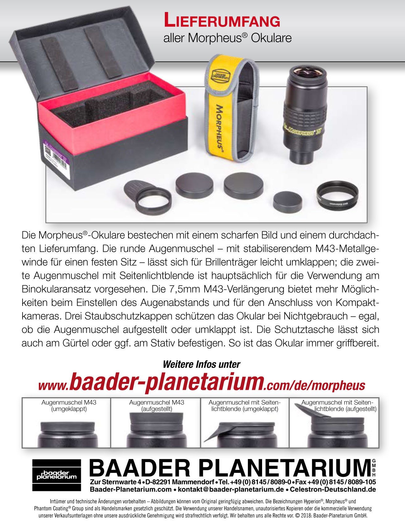 Zur Markteinführung des 17.5mm Morpheus® Okulars startet Baader Plamnetarium eine allgemeine Morpheus® Preisaktion: