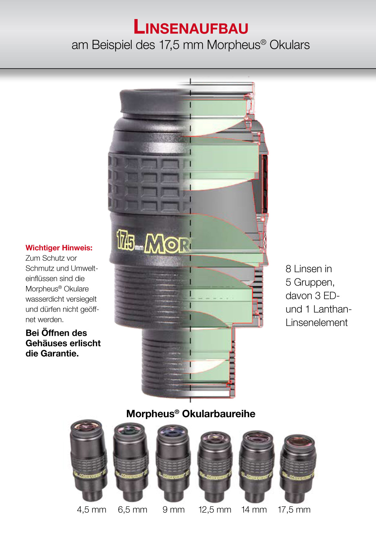 Alle Morpheus® Okulare werden ab 15.02. bis einschließlich 15.05.18 zum Einführungspreis von € 199,95 angeboten – anstelle des UVP von € 245,–