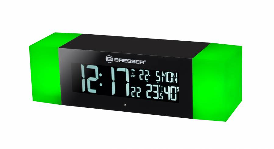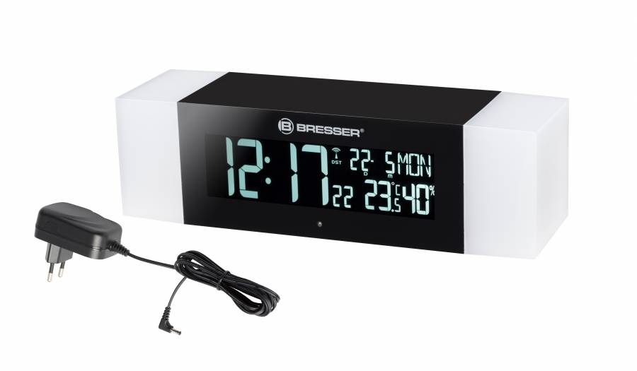 Der BRESSER FM Radio Lichtwecker zeigt Ihnen Informationen über die Uhrzeit, Datum und Wochentag, sowie die Temperatur und Luftfeuchtigkeit für innen.