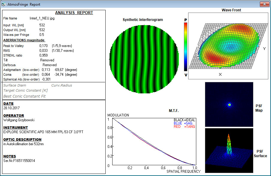 Wir liefern diesen schönen Apo mit einer Auswertung von W. Grzybowski.