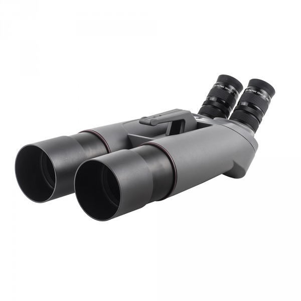 Der Augenabstand der Okulare beträgt 13, bzw. 15 mm. Für einen komfortablen Einblick sind die Okulare mit einer verstellbaren Gummi Augenmuschel ausgestattet. Das Gehäuse wurde in hochglänzendem, schwarz eloxierten Aluminium gefertigt.