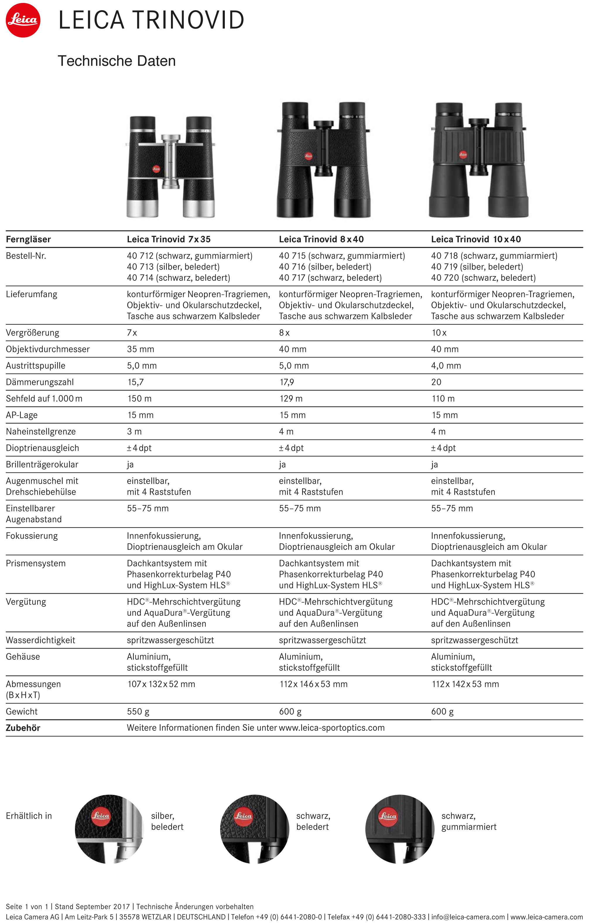 40718 | TRINOVID 10x40, gummiarmiert, schwarz | 4022243 40718 3 | September 2017 | € 1.400,- | |