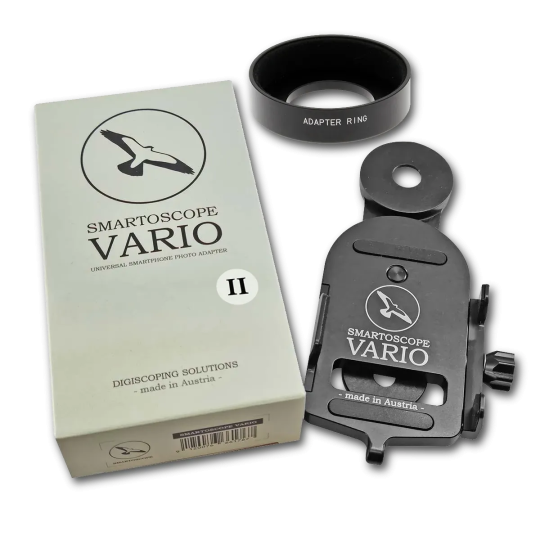 SMARTOSCOPE VARIO II Universeller Smartphone-Adapter mit SMARTOSCOPE K30 Optik-Arm und TSN-AR11WZ Okularring zur Verwendung mit Kowa TE-11WZ und TE-80XW Okularen für TSN-99 / TSN-88 / TSN-880 / TSN-770 / TSN-66 / TSN-55 Spektive.
