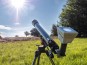 Wenn das Teleskop auf einer nachgeführten Montierung genutzt wird, kann die Sonne so über mehrere Stunden hinweg entspannt beobachtet werden. Bei einer nicht perfekt eingenordeten Montierung läuft die Sonne dabei langsam aus dem Bild heraus. Anhand der Richtung können Sie bei Tag sehen, in welche Richtung die Ausrichtung der Montierung korrigiert werden muss, und die Montierung so während der Beobachtung genauer einnorden – eine Anleitung dazu finden Sie im PDF der ausführlichen Bedienungsanleitung.