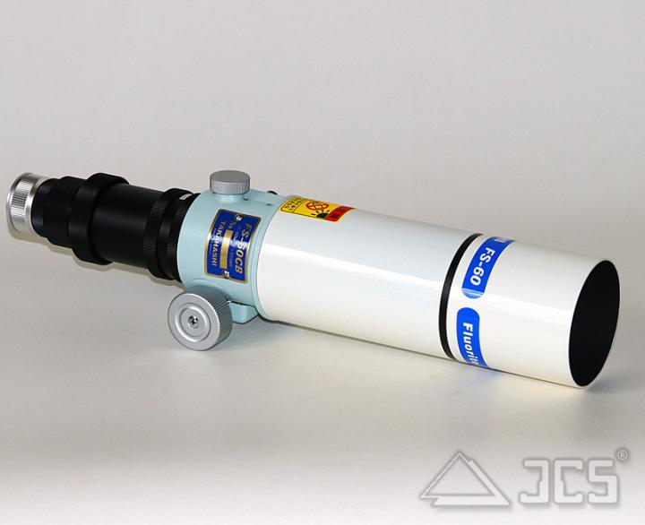 Der neuen FS-60CB hat gegenüber der klassischen Version (FS-60C) einen um 20 mm kürzeren Tubus. Über einen entfernbaren 20 mm langen Schraubadapter wird die originale Konfiguration wieder hergestellt. Damit ist der Lichtweg bequem an die verschiedenen Anforderungen adaptierbar, ob 1,25"-Equipment oder 2". Auch mit einem 2"-Zenitspiegel und einem 2"-Okular ist somit die Fokuslage bequem erreichbar.