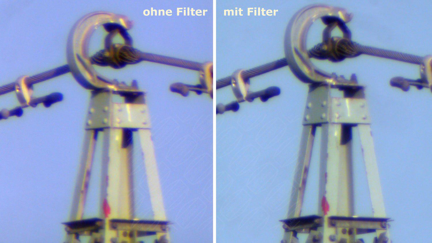 beseitigt violette Farbsäume und ebenso rote Farbränder über 700 nm