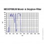 Nebenstehende Graphik zeigt Ihnen die Spektralkurve unseres Neodymium Mond & Skyglowfilters. Auf der waagerechten Achse ist die Wellenlänge in Nanometern und auf der senkrechten Achse die Transmission (Durchlässigkeit) in Prozent angegeben.