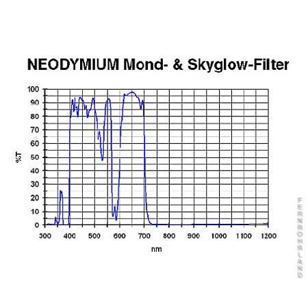 Der Effekt des Elements Neodymium als Filtermaterial ist sehr beeindruckend. Als Beimischung zu optischem Glas steigert es Kontraste, verstärkt den roten Farbanteil im Bild (besonders bei Mars u. Jupiter) und es dunkelt gleichzeitig nachts denjenigen Spektralbereich ab, der besonders unter Straßenlampenlicht leidet, und der am stärksten für das nächtliche "Skyglow" verantwortlich ist.