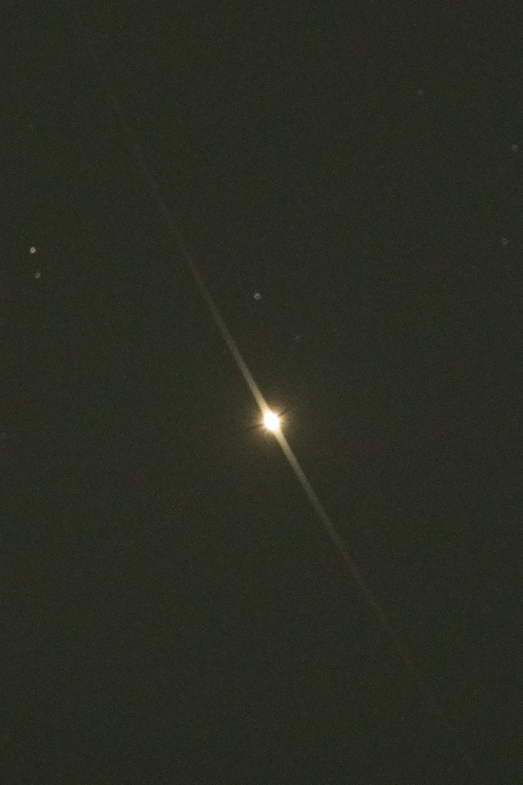 Allerdings leiden alle Amici-Prismen - egal, wie gut sie sind - unter einer Konstruktionseigenschaft: Es geht eine Kante mitten durch das Bild, und zwar dort, wo die beiden Prismenseiten aufeinander stoßen. An dieser "Dachkante" können Reflexionen oder Spikes entstehen. In einem gewissen Maß fällt das immer auf, wenn ein helles Objekt wie ein Stern vor einem dunklen Hintergrund wie dem Nachthimmel beobachtet wird. Das sollte aber nur bei hellen Sternen oder Planeten störend auffallen, während es bei schwächeren Sternen nicht auffällt. Bei solchen Spikes bewegen Sie das Teleskop einfach ein wenig, damit das Licht nicht mehr direkt auf die Dachkante fällt.