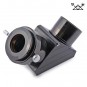 90° mit 2" Okularaufnahme und 2" Steckhülse, inklusive Reduzierhülse 2" auf 1¼". Hervorragend geeignet für die terrestrische Beobachtung mit 2" Okularen. Nicht für hohe Vergrößerungen geeignet - für qualitativ hochwertige astronomische Bilder mit hoher Vergrößerung verwenden Sie besser unsere Spiegel und normale Prismen, oder das Amici-Dachkantprisma # 2456120, da die Dachkante den sog. "split" Effekt und der lange Lichtweg einen Farbfehler erzeugt