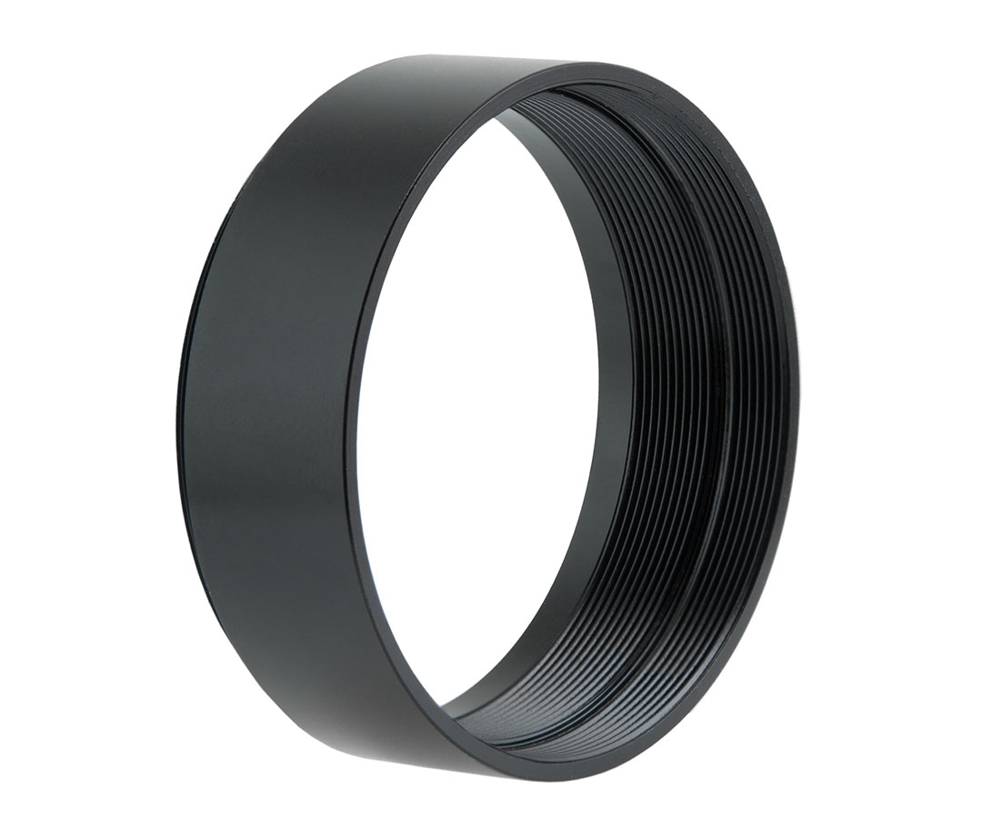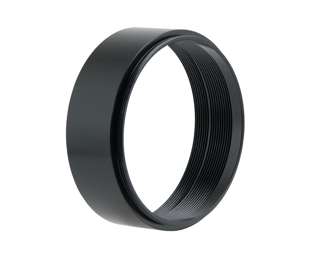 Dieser Adapter hat sich in vielen Bereichen der Astronomie als sehr wichtig erwiesen. Die Verlängerungshülse wird einfach in das M48-Filtergewinde von 2"-Okularen oder 2"-Adaptern geschraubt und verlängert die Einsteckhülse. Damit kann man die Passgenauigkeit eines Adapters verbessern.